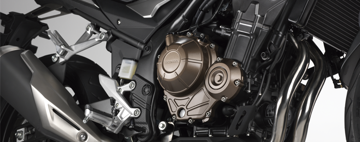 | AGILIDAD CICLÍSTICA | La CB500F esta equipada con un motor DOHC de 8 válvulas, refrigerado por líquido y un liviano chasis tubular. Esta distribución equilibrada del peso, se traduce en mayor estabilidad y agilidad, tanto en ciudad como en ruta. |