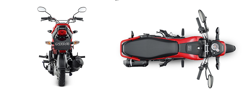 COMPACTA Y LIVIANA 1.808 milímetros de largo, 748 milímetros de ancho, 1.039 milímetros de alto y 104 kilos de peso en orden de marcha. Números que hacen de la nueva Honda NAVi una moto fácil de manejar, de maniobrar y de estacionar.