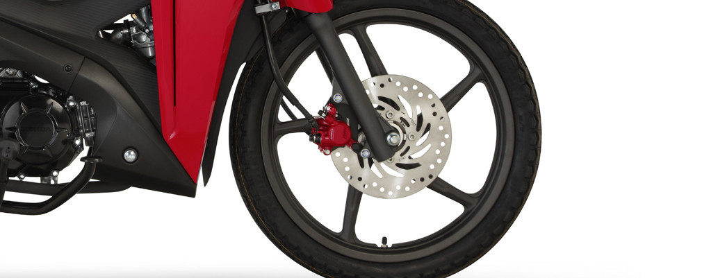 WAVE CON DISCO. ES LA VERSION CON FRENO A DISCO DELANTERO, QUE ADEMAS INCORPORA LLANTAS DE ALEACION.