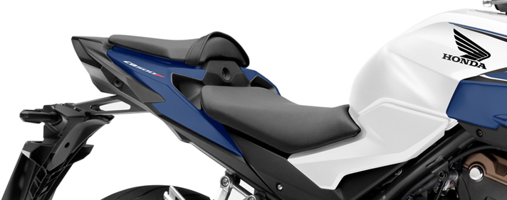 | LÍNEAS SIMPLES Y ELEGANTES | La CB500F ofrece un asiento escalonado, perfecto para andar por la ciudad con gran comodidad, ya que, también ofrece espacio para un pasajero. |