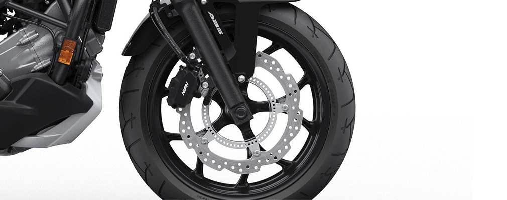 SEGURIDAD La nueva NC750X cuenta con ABS de doble canal, evitando bloqueos en ambas ruedas al momento de un frenado exigente. El sistema HSTC (Honda Selectable Torque Control) controla la tracción del neumático trasero en todo momento, garantizando una conducción sin derrapes. El disco delantero de 320mm con pinza Nissin de 2 pistones, sumado al disco trasero de 240mm, garantiza un frenado de alto rendimiento.