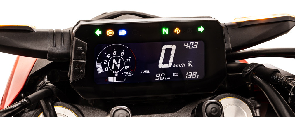 | SEGURIDAD | • ABS DE DOBLE CANAL: Posee sistema de ABS de doble canal. Si alguna de las ruedas se bloquea, el sistema limita o reduce el frenado en esa rueda para evitar el derrape y permitir un mejor control durante el frenado. • CONTROL DE TRACCIÓN HSTC: La unidad ECU calcula el deslizamiento de la rueda trasera en función de los sensores de velocidad de la rueda delantera y la trasera y regula la inyección de combustible para optimizar el par motor y mitigar el patinamiento. Puede desactivarse mediante el usuario. |