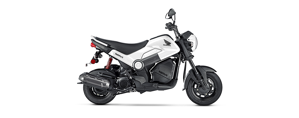 COMPACTA Y LIVIANA 1.808 milímetros de largo, 748 milímetros de ancho, 1.039 milímetros de alto y 104 kilos de peso en orden de marcha. Números que hacen de la nueva Honda NAVi una moto fácil de manejar, de maniobrar y de estacionar.
